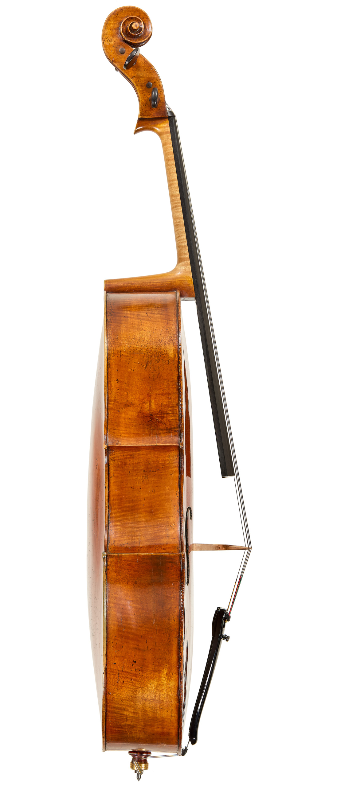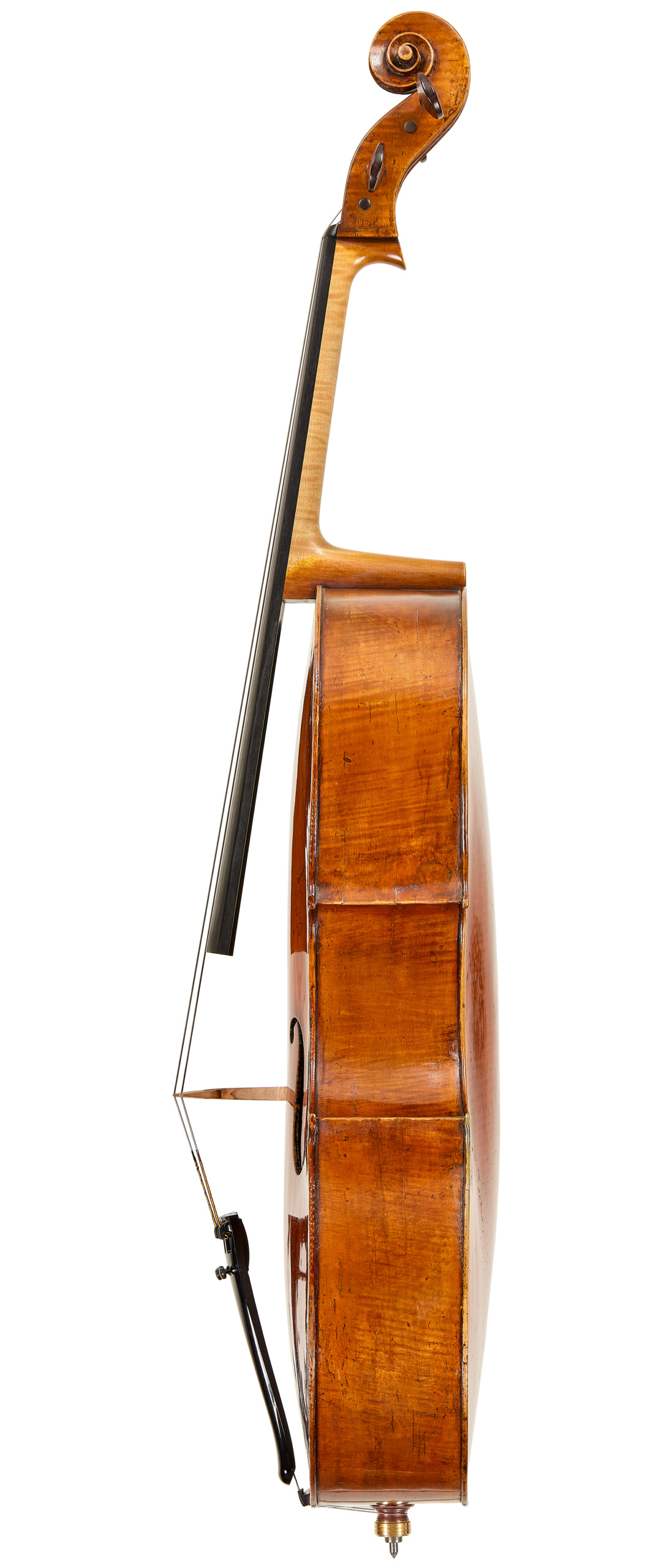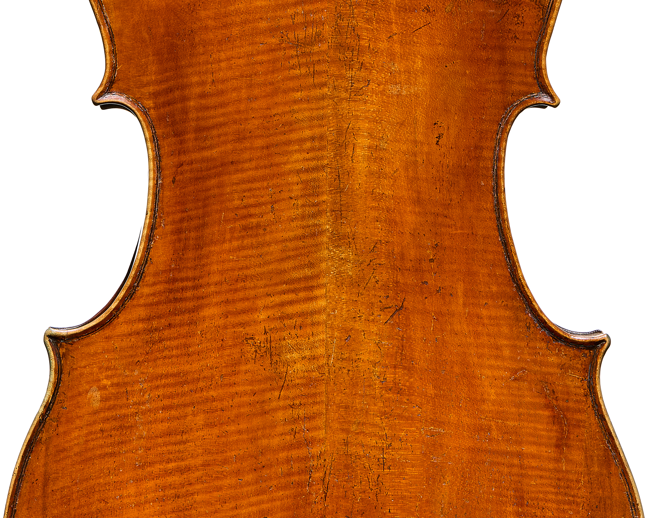This cello is exceptional and a suitable match for a top-level cellist. Many of the other Storioni cellos we know are small-sized (under 70cm in back length), whereas this instrument measures 72.7 cm, with full bout widths of 34.7 and 45.0 cm, enabling it with the power to deliver a full and magnificent sound. Additionally, the materials are of superior quality, featuring a well-flamed two-piece back of fancy maple, rather than local, less flashy wood.