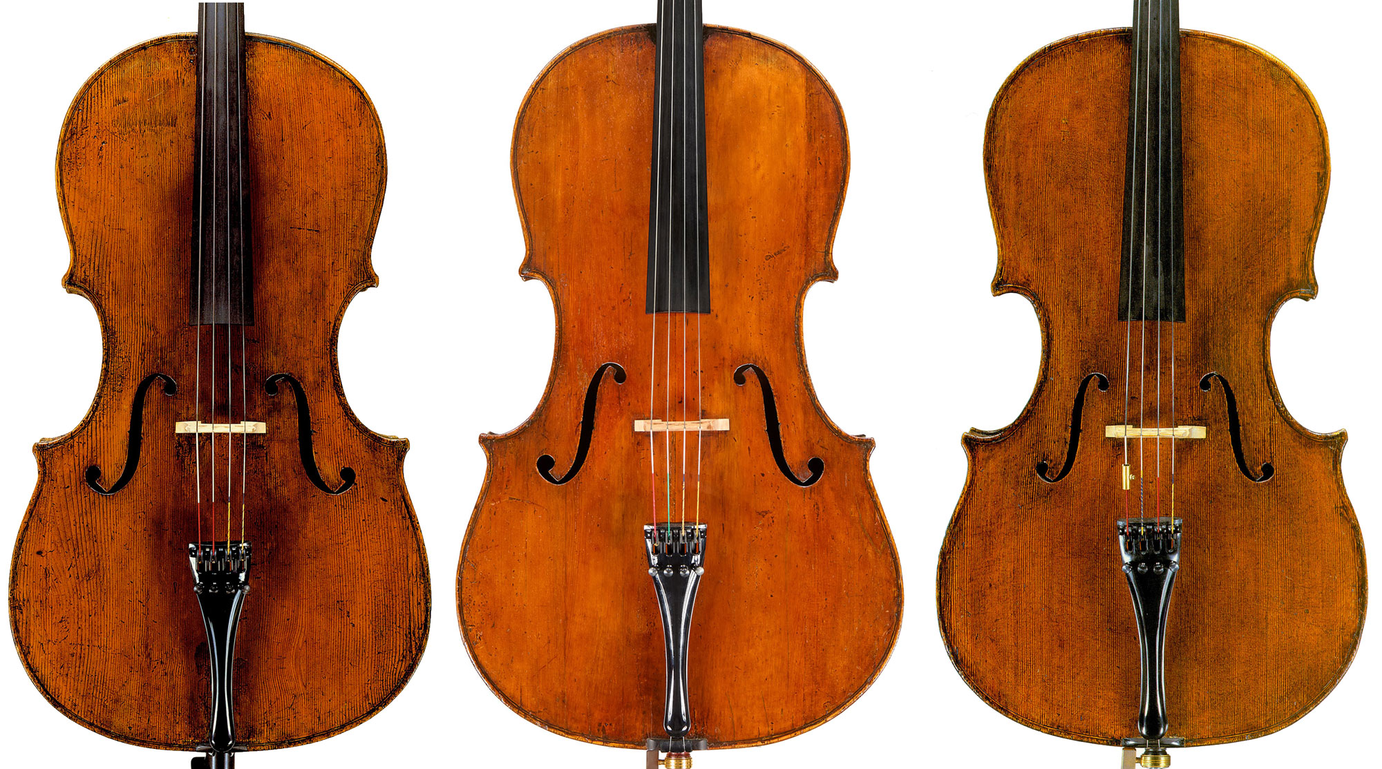 Three Storioni cellos. Technically there’s more variation than continuity – the dimensions, proportions, and curves are all subtly different – but the cellos are clearly brothers.