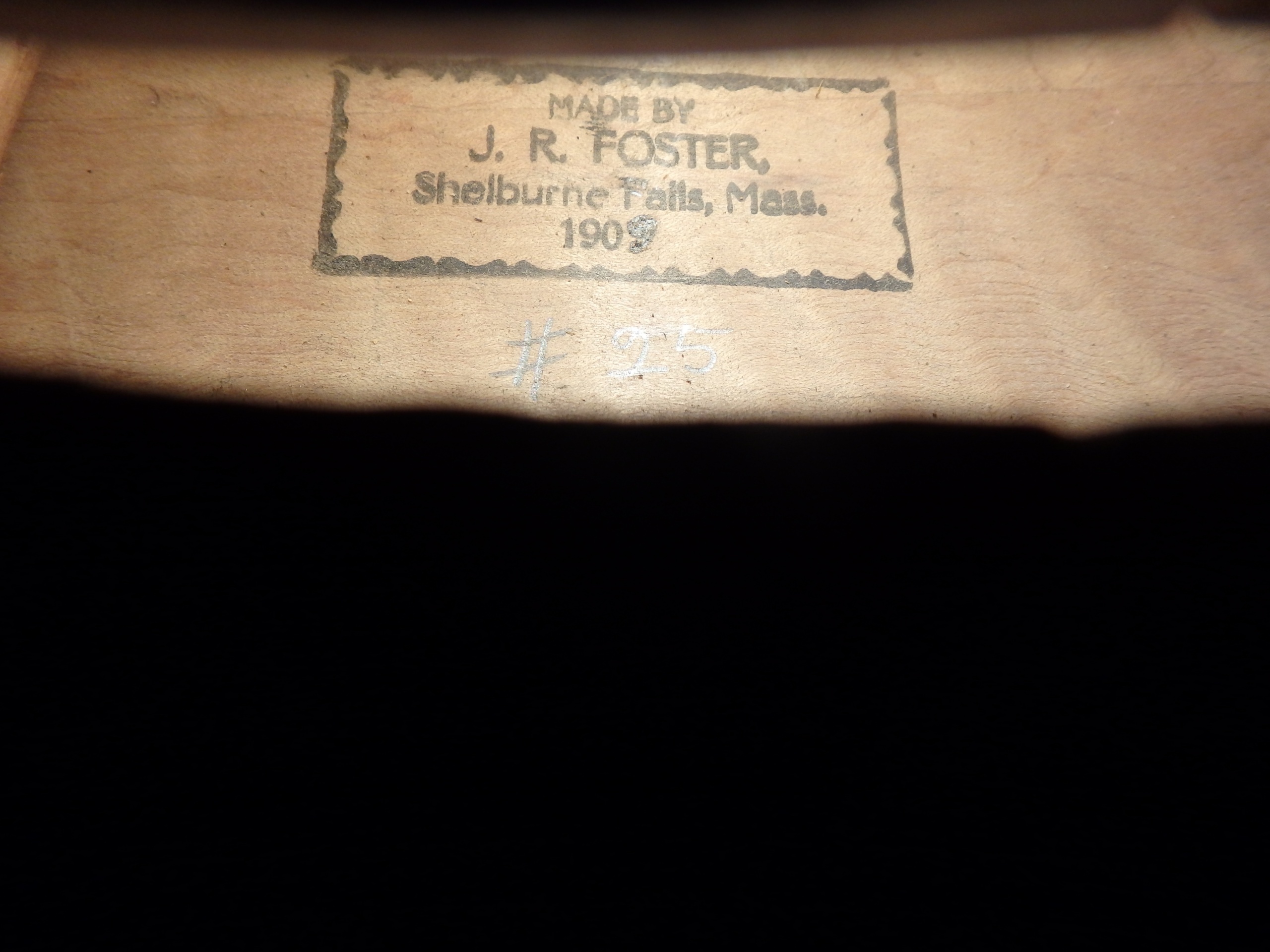 “Made by J. R. Foster, Shelburne Falls, Mass. 1909.”