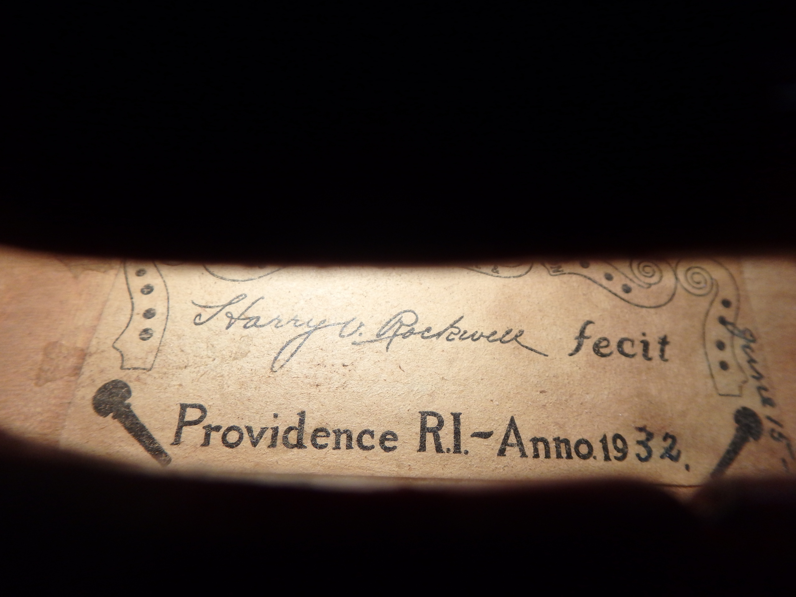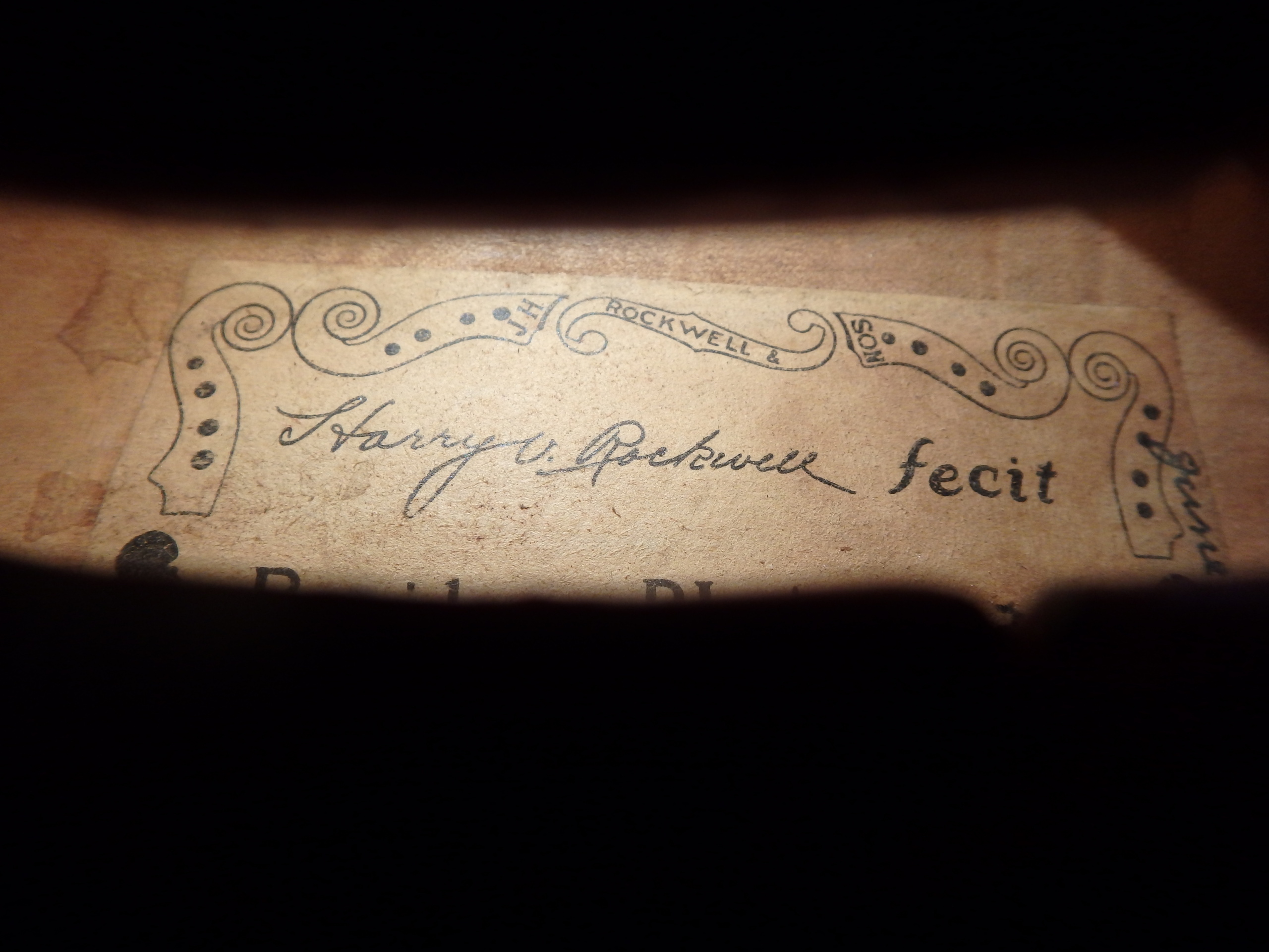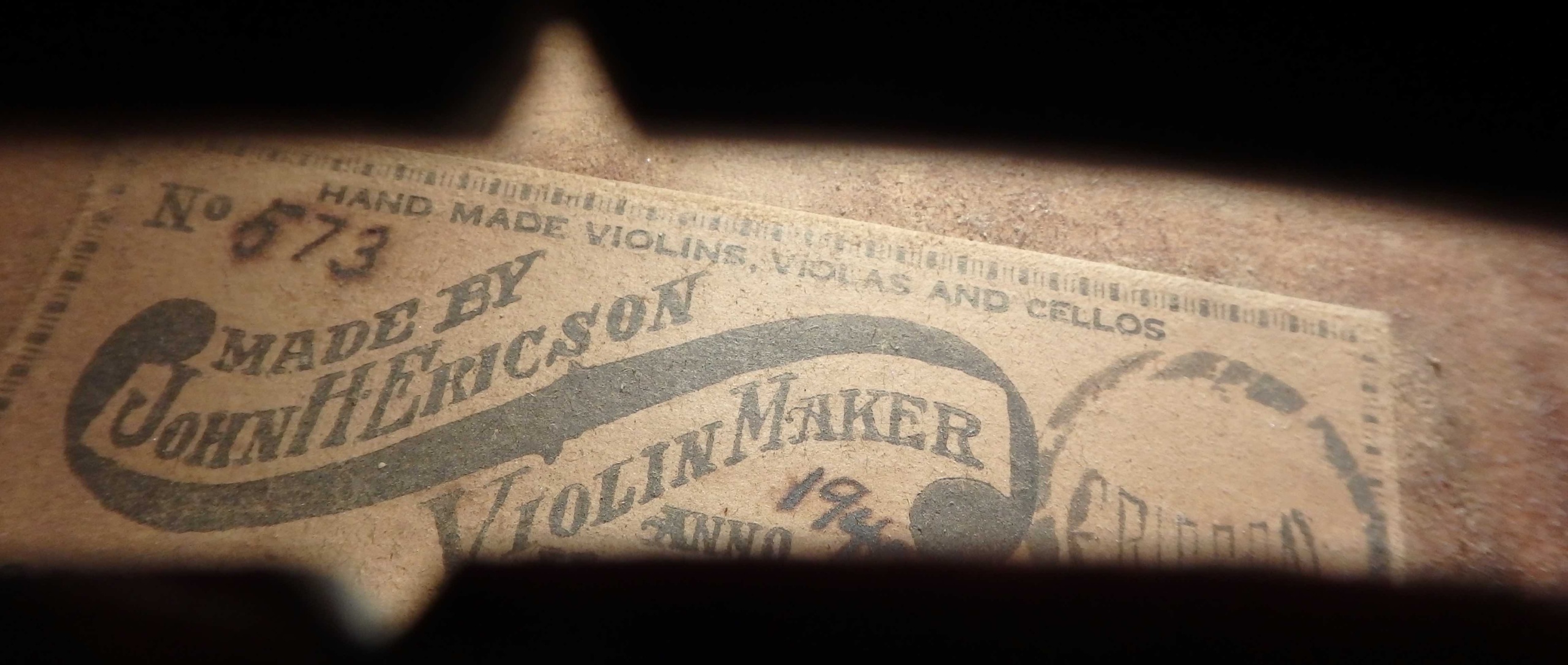 “Harold A. Pinney Plymouth, Vermont Maker of Artistic Hand-Made Violins. Exact copy of ‘Andreas Guarnerius’ price $100.00. Made Feb. 10, 1936 No. 326.”