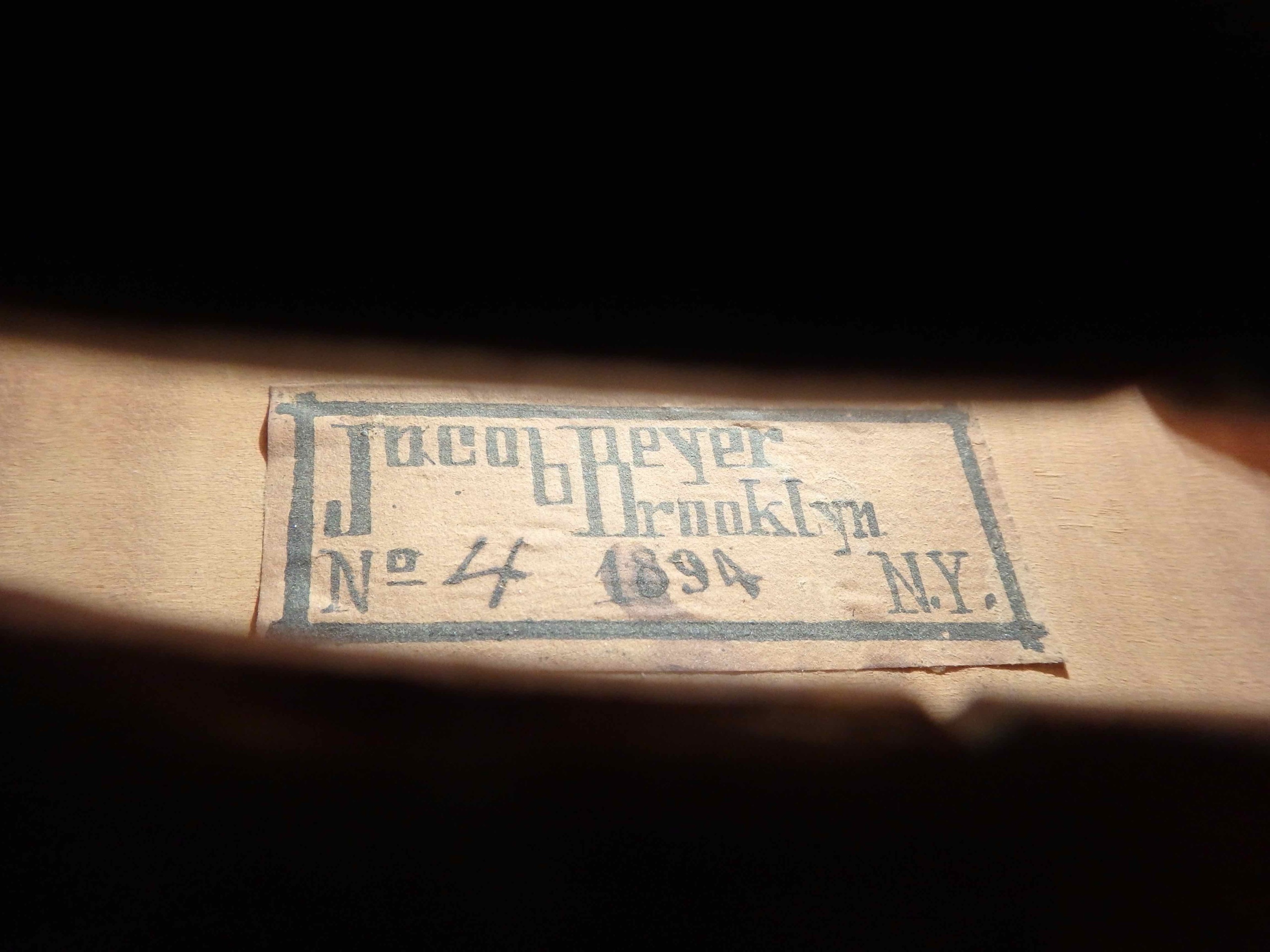 While we’re on the topic of aesthetics, the award for best design will be given to Jacob Beyer for his label in his 1894 violin, No. 4. Not only does he employ the brilliant efficiency of only one capital B to write his last name and city, but he chooses a fascinating typeface that is unlike any other label I’ve seen. The unique lettering style and inconsistent inking suggests Beyer’s labels were produced at a small scale, perhaps locally.