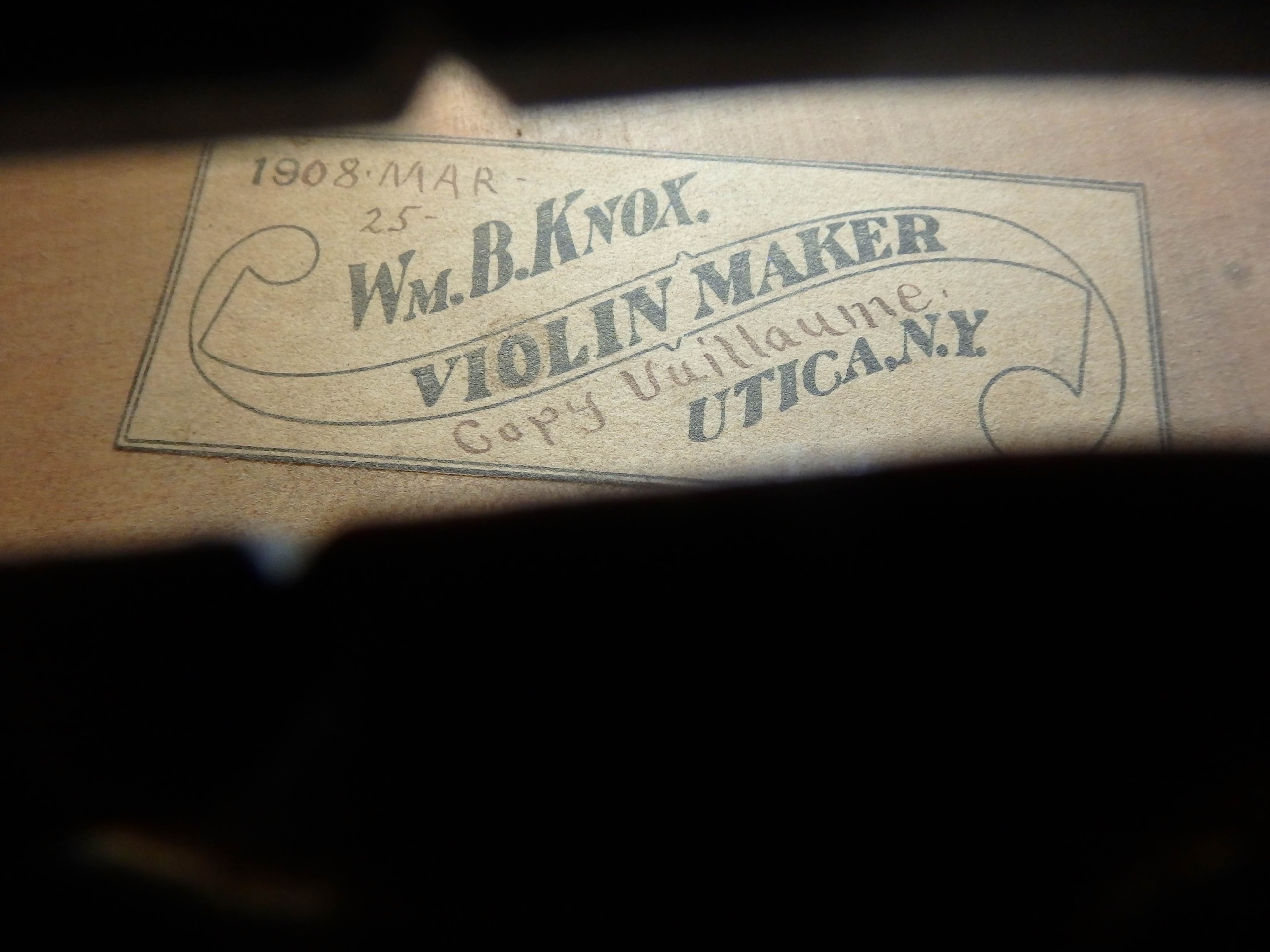 "WM. B. Knox. Violin Maker Utica, N. Y. Copy Vuillaume 1908 Mar - 25."